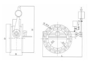 電控式煤氣快速切斷閥由密封性能良好的蝶閥電磁機構、鎖定機構、重錘及重錘臂等部件組成;閥門開啟時,重錘臂處于豎立位置,電源接通,重錘臂被鎖定機構鎖定,管道正常輸氣。當管道內介質壓力底于規定值或系統出現異常需立即切斷介質時,可通過相應的控制回路使電磁機構斷電,解除鎖定;重錘臂及閥板在重力的作用下,依順時針方向落下,閥門關閉。當需要恢復供氣時,將重錘臂連同重錘按逆時針方向轉至升至似堅直位置,鎖定機構復位,此時行程開關的接點閉合,電磁機構得電,重錘臂被鎖定。閥門又呈開啟狀態。
