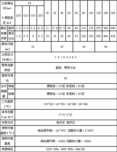 ZAZM型電動(dòng)籠式套筒調(diào)節(jié)閥主要技術(shù)參數(shù)
