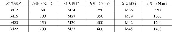 上閥蓋雙頭螺栓緊固力矩表
