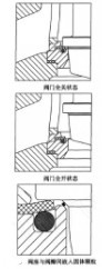 對于夾帶固體顆粒的流體介質,軟閥座閥門的密封結構更為重要。這主要是因為介質中夾帶有固體顆粒時,極容易卡在閥瓣和閥座的密封面之間,妨礙了閥座的密封,會引起泄漏,繼而由于介質的高速沖刷而使閥座表面被沖蝕破壞。對于上述具有二級關閉作用的軟閥座密封結構(圖6),即使出現了這種顆粒卡在閥瓣和閥座金屬密封部位之間,也不會有什么危害,因為還有閥瓣和軟閥座之間的密封,仍能起到可靠有效的補充密封作用。