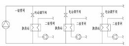 發布時間:13-07-23 關注次數:對于一個已知的供熱管網(一級管網)系統而言,如圖1所示,各換熱站相互并聯,在各換熱站入口設有電動調節閥。在運行中,各管段阻抗和設備阻抗是固定不變的,只有調節閥通過調節開度而改變阻力特性。在實際運行中,由于末端供暖用戶供暖調節引起二級管網側流量和供回水溫度的改變。二級管網側的流量調節是通過二級管網的變頻泵實現的,來保證管網的某處的供回水壓差不變,與此同時,二級管網側的工作溫度和供回水溫差會因為用熱負荷的減小或增大而相應的減小或增大,這時,需要通過改變一級管網側的供熱量來保證二級管網側的供水溫度和供回水溫差的不變。一級管網側的調節可以是集中調節和個體調節相結合,集中調節包括集中質調節和流量調節,個體調節主要是一級管網側閥門開度的調節,來改變進入換熱站的流量。由于各換熱站并聯在管路中,一個換熱站閥門開度的改變,會引起其他各換熱站流量的改變。如果不從管路基本特性角度考慮來控制各閥門的開度,以實現對各換熱站流量的調節,則管網的整個運行調節將成為無序不穩定的工況,會出現水力失調和熱力失調現象,嚴重影響供熱質量,并將造成供熱效率下降。