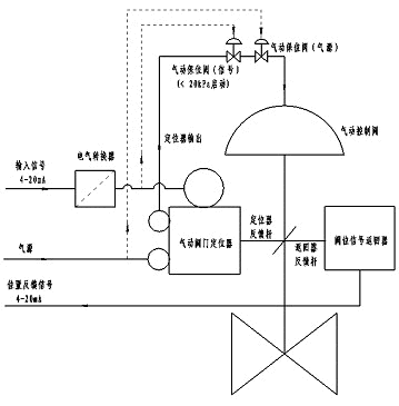 本方案的缺點:斷信號保護時,有極短時的滯后,配用附件較多,安裝、調試比方案(一)復雜一些,閥位反饋需另配閥位信號返回器,在配用手輪的情況下,比較復雜。