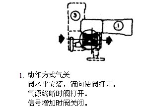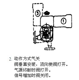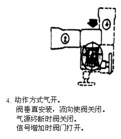 13、凸輪撓曲閥(附圖1-11)安裝方向根據閥門動作方式(氣開或氣關)以及管道的流向來確定,如圖2.2.13所示。圖中執行機構的安裝方式可據現場安裝位置來確定選用①或③及②或④。設計時若不選定,則產品出廠時,執行機構是按①及②的安裝位置提供的。