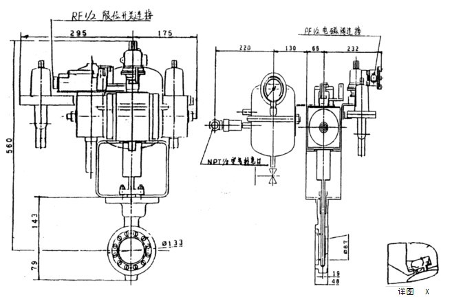 2、在附圖中,當安裝尺寸線標有“X”記號時為管件接管件的尺寸,要校核調節閥膜頭與附近閥門或管道之間是否有足夠的凈距。