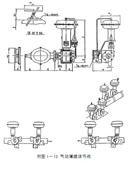 10、附圖中,調節閥膜頭與旁通管的凈距、調節閥中心距地面或平臺標高均為最小距離,如有特殊要求,應根據具體情況酌情增減。